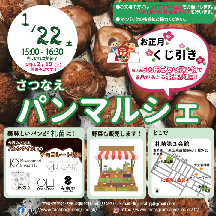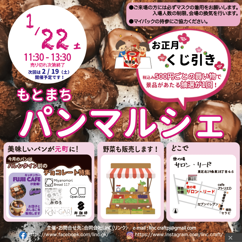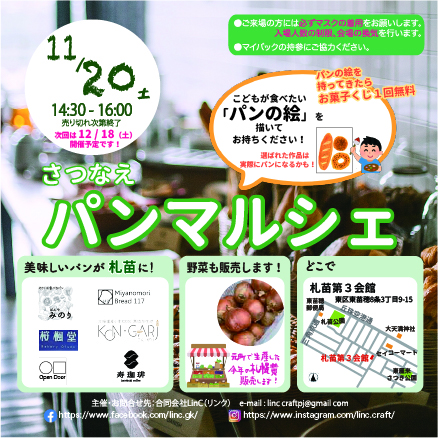 今月も元町と札苗、2つの会場でパンマルシェを開催します。