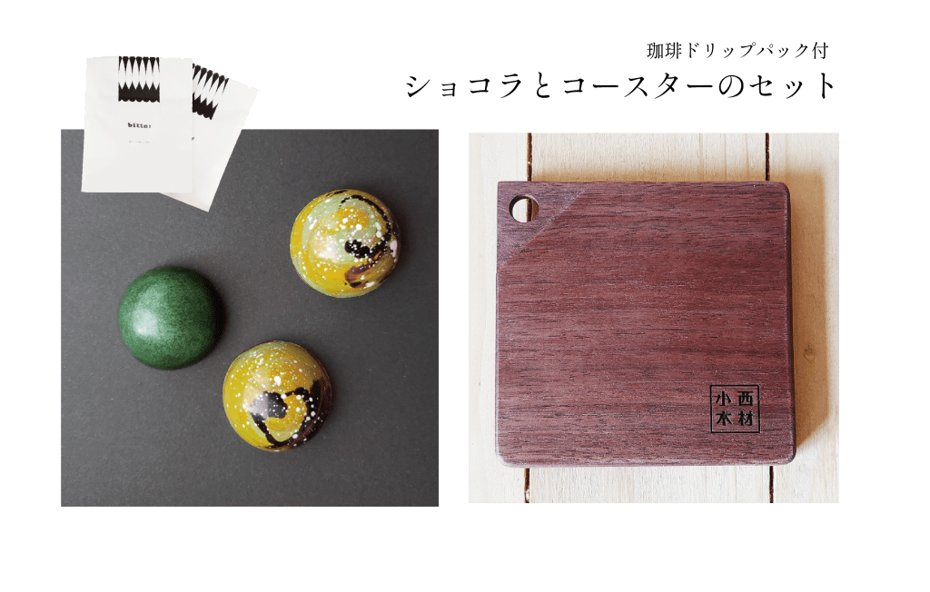 A ショコラとコースターのセット(珈琲ドリップパック付) 3,000円(税込)